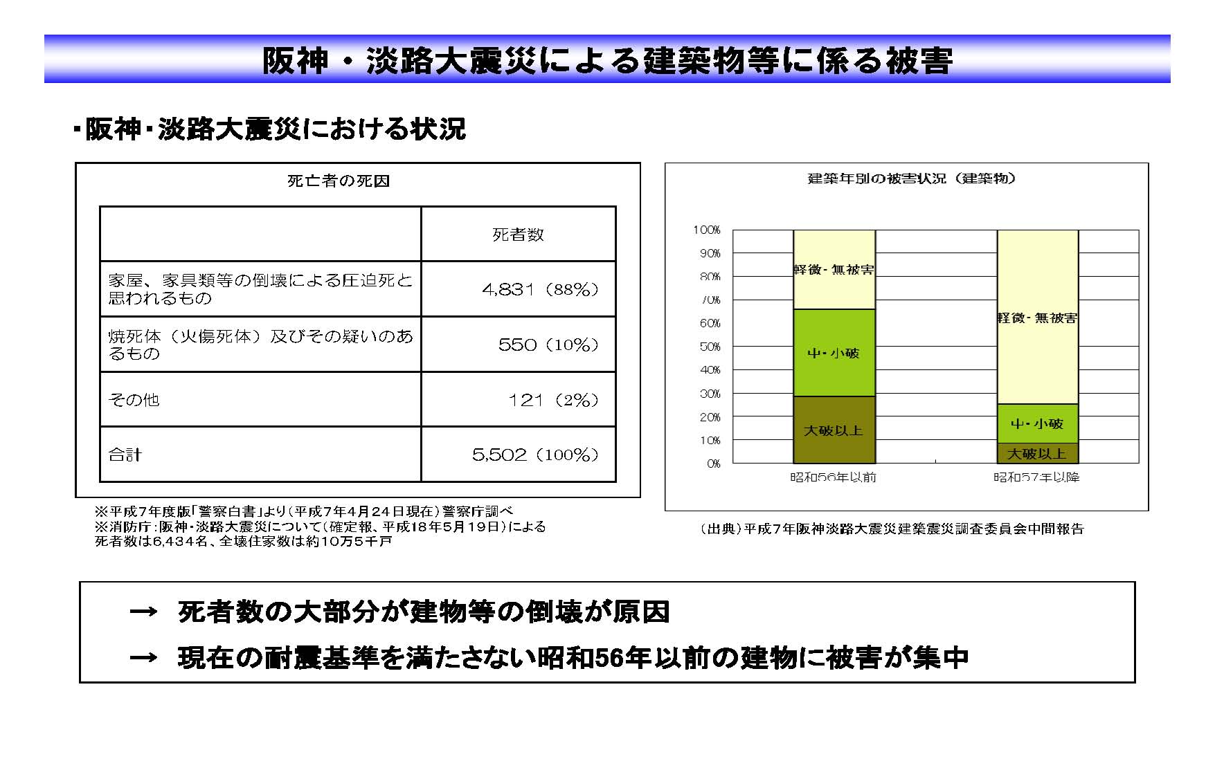 このときの地震で亡くなった方の88%が家屋や家具の倒壊により下敷きになって亡くなった圧死でした。