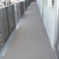 屋外通路 施工前の状況 通路に多くのヒビ割れがあり、排水もうまく出来ていない上に、汚れも目立ってきていました。 施工ポイント 通路は、防水シートを貼り、排水側は、ウレタン塗装で、防水施工をしました。 お客様の声 2階の通 …
